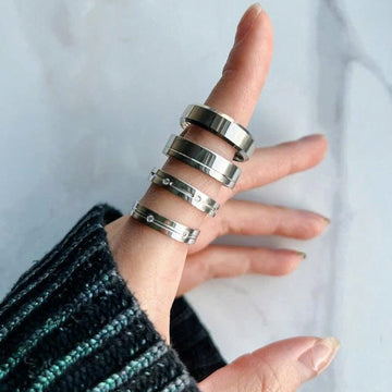 Our modern wedding bands, handcrafted in London, are sculptural and minimal, designed to sit beautifully on the hand while carrying deep meaning.