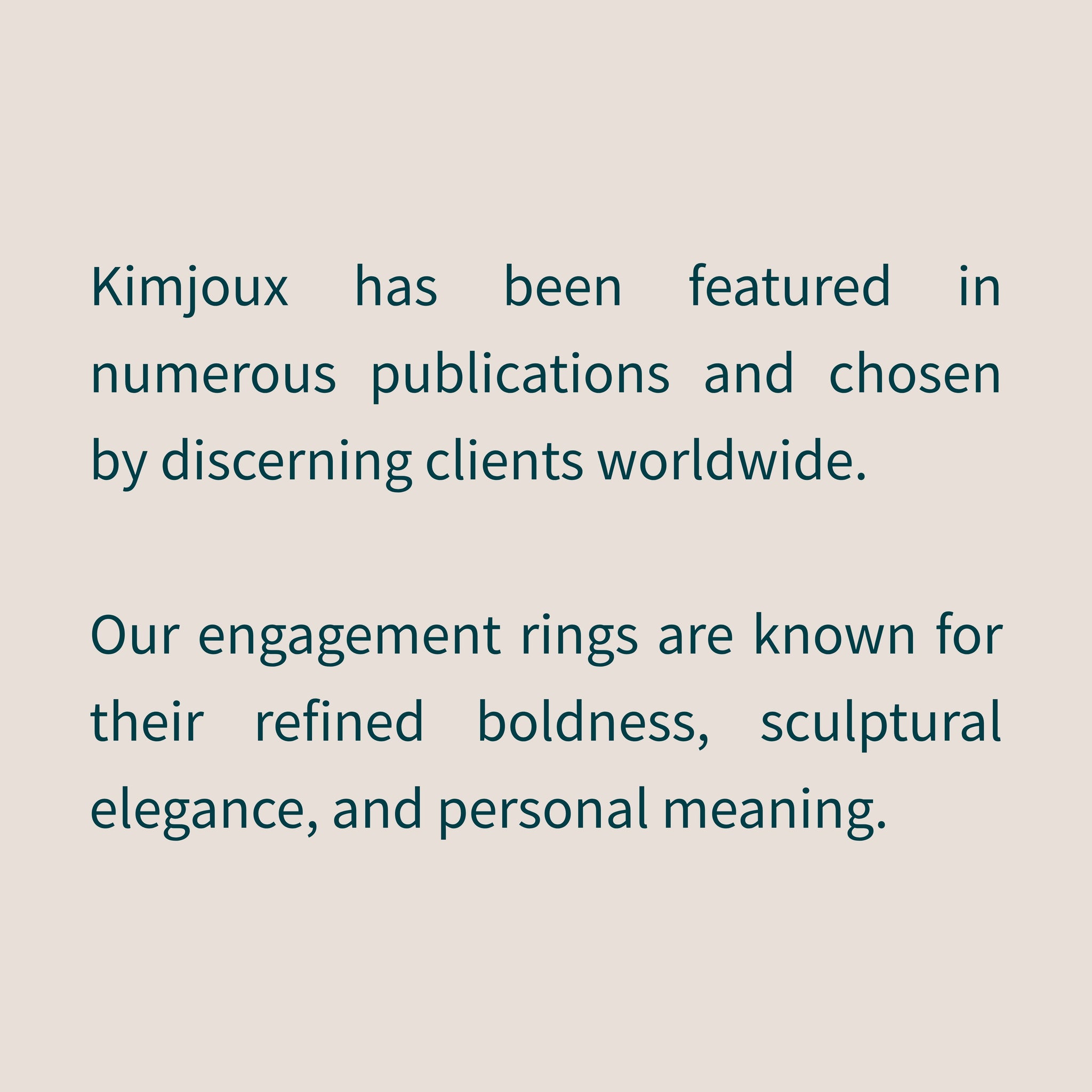 Kimjoux creates bespoke engagement rings that balance classic elegance with sculptural boldness and deeply personal meaning.