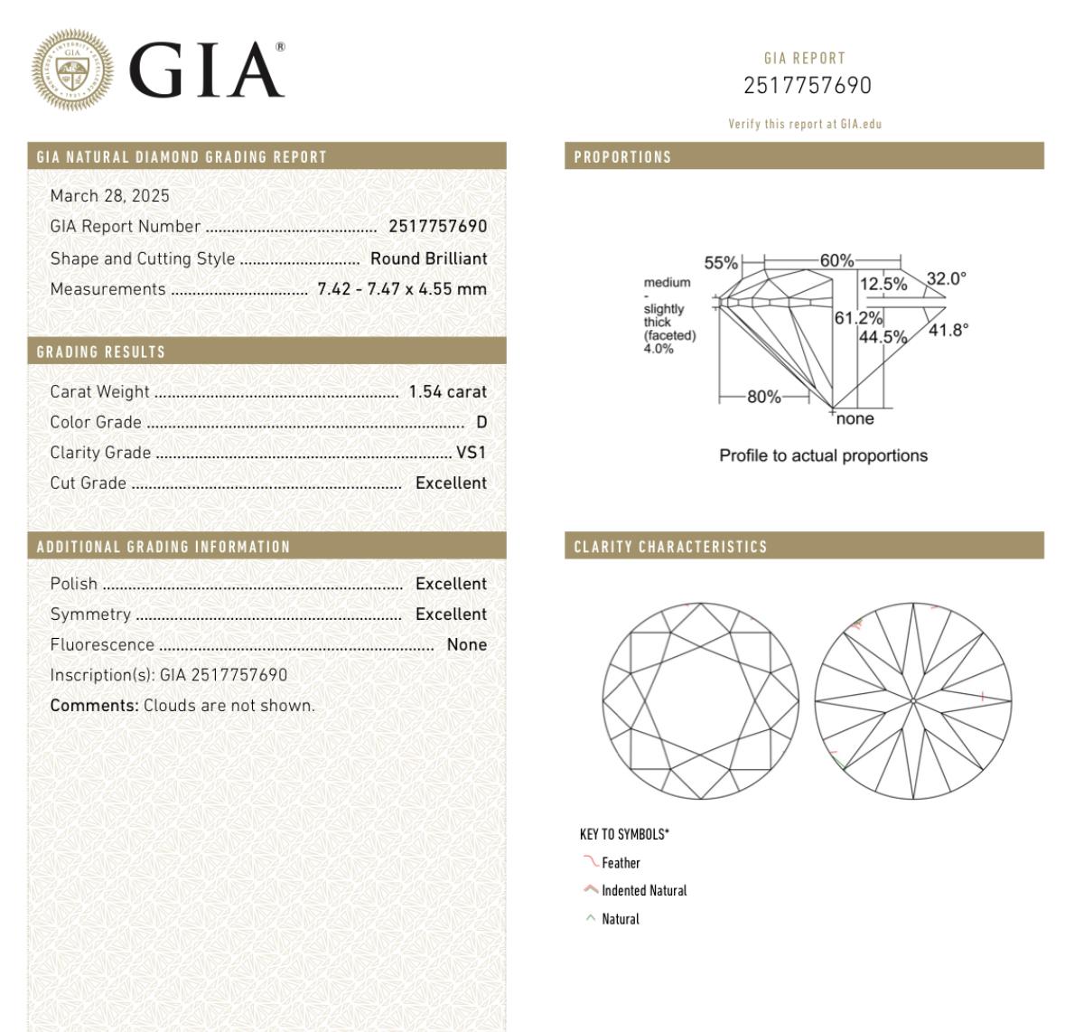 Kim cương tròn cắt sáng (Round Brilliant) 1.54 carat