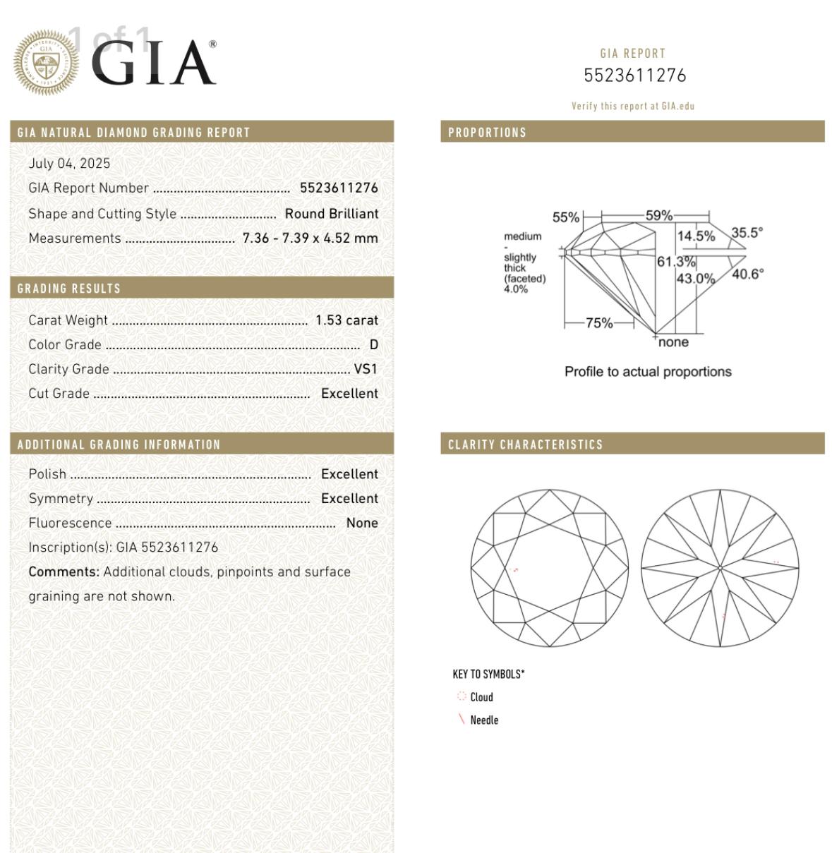 - Kim cương tròn cắt sáng (Round Brilliant) 1.53 carat